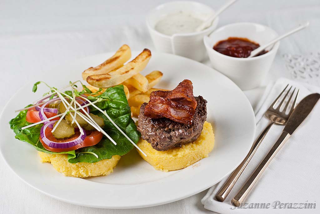 This is what we ate last night – a deconstructed gluten-free burger with polenta instead of bread buns. No one in our family missed the buns. There’s no need for a recipe because polenta is made according to the instructions on the packet, the chips were baked in the oven, the salad was assembled in two minutes and the meat patty was just that – seasoned minced beef, though I did add some cumin powder and cumin seeds because I love cumin. If you have good minced meat, there is no need to add anything else except seasoning. This was a meal I could eat without any qualms and everyone was happy with it. I am starting to get the hang of this.